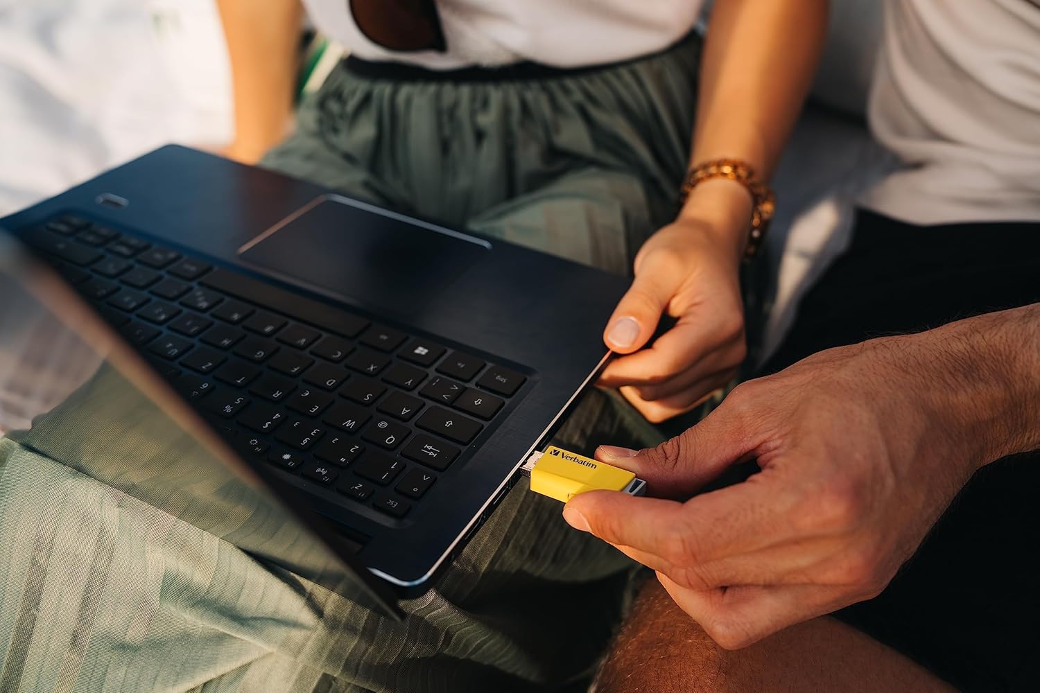 Data is just a click away with the Verbatim Store 'n' Click Stick! The USB Store 'n' Click gives you the ability to capture all the data you want in a small, convenient location and conveniently transfer it during your tasks, no matter whether you're at home or in the office. Unique slide and lock design technology allows you to comfortably extend and retract the USB connector, protecting it when not in use. Locks in extended position when using the flash drive and locks in the closed position when not in use. An additional advantage is that there are no connector covers that can be lost! USB 3.2 Gen 1 interface ensures data transfer speeds of up to 5Gbps. It is also compatible with USB 2.0* ports and can therefore be used with a wide range of existing devices without the need for upgrades.