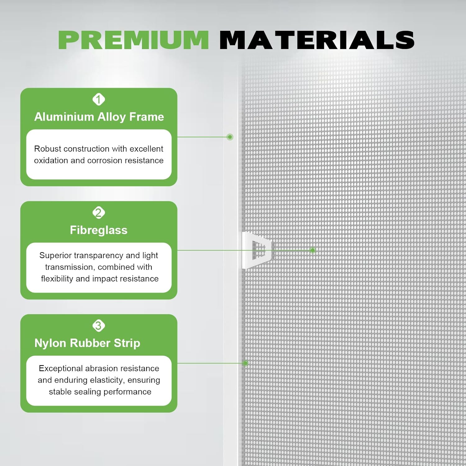 This aluminium fly screen is designed for families who value comfort, peace and a safe living experience. It creates the ideal balance between reliable insect protection and pleasant everyday comfort. The insect protection for windows sturdy aluminium frame is available in white or anthracite and impresses with clean lines that blend harmoniously into different living styles. Thanks to several common sizes, the fly screen can be used flexibly - with special window dimensions, it can be easily cut to size for a perfect and relaxed installation. The window insect protection with frame reinforced aluminium frame in combination with the durable fibreglass fabric ensures good visibility and effectively keeps mosquitoes and other insects away. At the same time, fine dust is reduced, which contributes to a more pleasant indoor climate. Even with prolonged use and changing weather conditions, the construction remains stable and dimensionally stable. The fly screen with frame window drill-free installation protects the window frame from damage and is particularly suitable for rented apartments or households that do not want permanent changes. Whether in the bedroom, living room or kitchen, this fly screen allows fresh air and daylight without sacrificing protection. So you can open your windows worry-free and enjoy a quiet, clean and relaxed living atmosphere. Product parameters: Aluminium frame colour: white / anthracite. Sizes: 80 x 100 cm / 100 x 120 cm / 120 x 140 cm. Frame dimensions: approx. 2.5 cm wide, approx. 0.5 inch thick Frame material: aluminium alloy. Mesh material: fiberglass Net colour: grey. Piping seal: nylon. Package includes: 1 x aluminium fly screen
