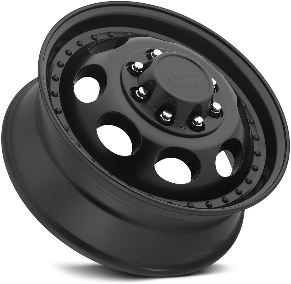 Brand: VisionStyle: 181 Hauler Dually FrontSize: 19.5x6.75Bolt Pattern: 8x165.1 (8x6.5")Offset: +102mmBackspacing: 8.14"Hub Bore: 124.5mmFinish: Matte BlackQuantity: 1