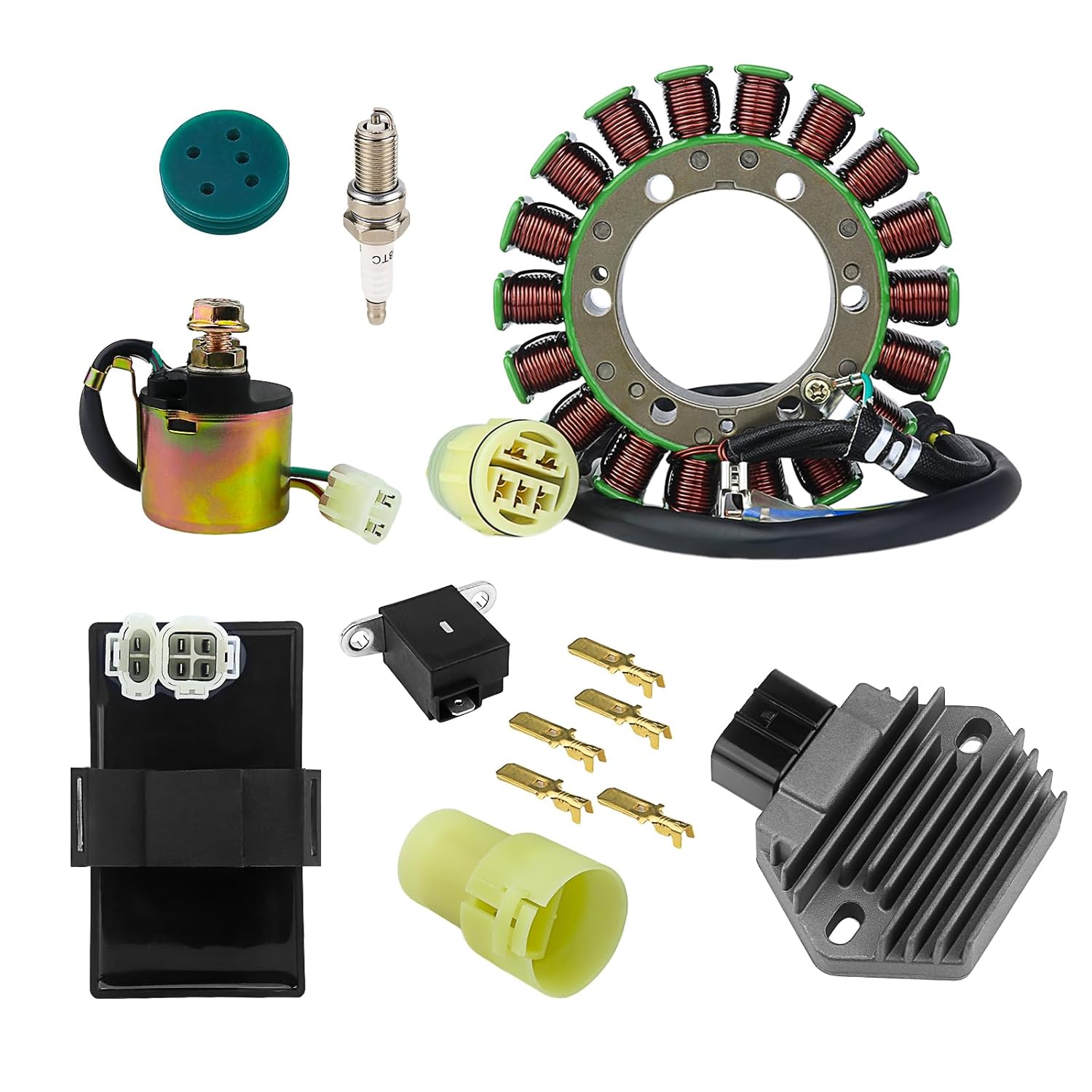 | Included Components | Starter Relay Regulator Stator Ignition Coil CDI |