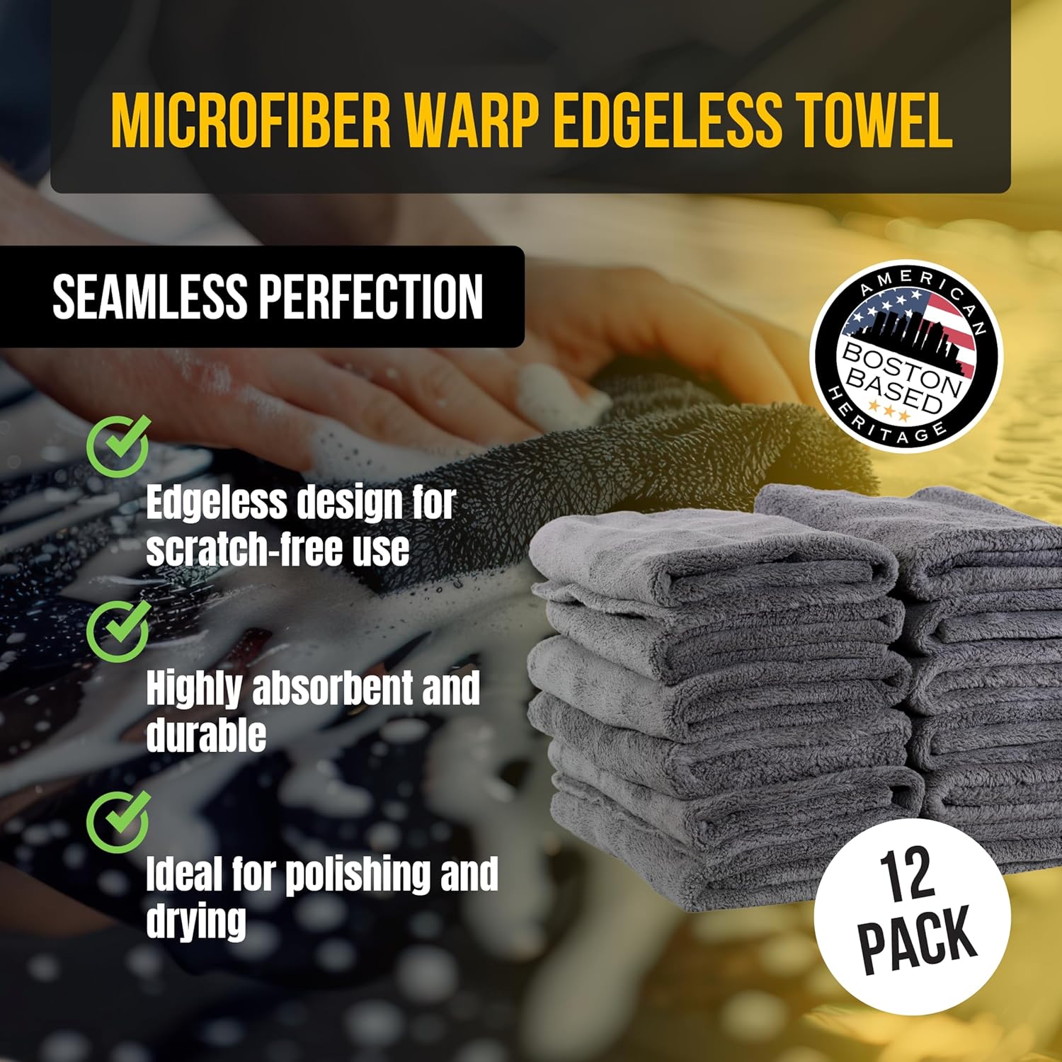 Transform your vehicle maintenance with VPD's Microfiber Warp Edgeless Towel, your premium choice for car care. These 15.75" by 15.75" gray towels, available in a 12-piece set, are crafted for the softest touch, ensuring a scratch-free, polished finish.Designed for superior absorbency, they quickly dry your vehicle for a streak-free shine, versatile enough for drying, buffing, and general cleaning. Their durability allows for repeated washes without loss of quality, making them a staple in your car care collection. Their edgeless, tag-free design ensures all surfaces are treated gently, making them ideal for any part of your vehicle, from exterior to interior. Ease of use is a cornerstone of VPD's design philosophy, and these towels are no exception. Fully machine washable, they offer convenience and longevity, supporting your detailing process with each use. Whether you're an enthusiast or a professional, these towels meet the demands of any detailing task, ensuring that your vehicle maintains its pristine condition.Valentine Performance Detailing (VPD) was founded by Richard J. Valentine, a passionate entrepreneur and accomplished race car driver. His unique perspective, blending the precision of racing with business acumen, shapes the ethos of VPD. Each product is a tribute to RJ Valentine's commitment to excellence, offering unparalleled quality in automotive care. VPD stands as a symbol of his legacy, turning everyday vehicle maintenance into an art form. Here, every car is treated not just with products, but with the passion and precision of a race car driver.