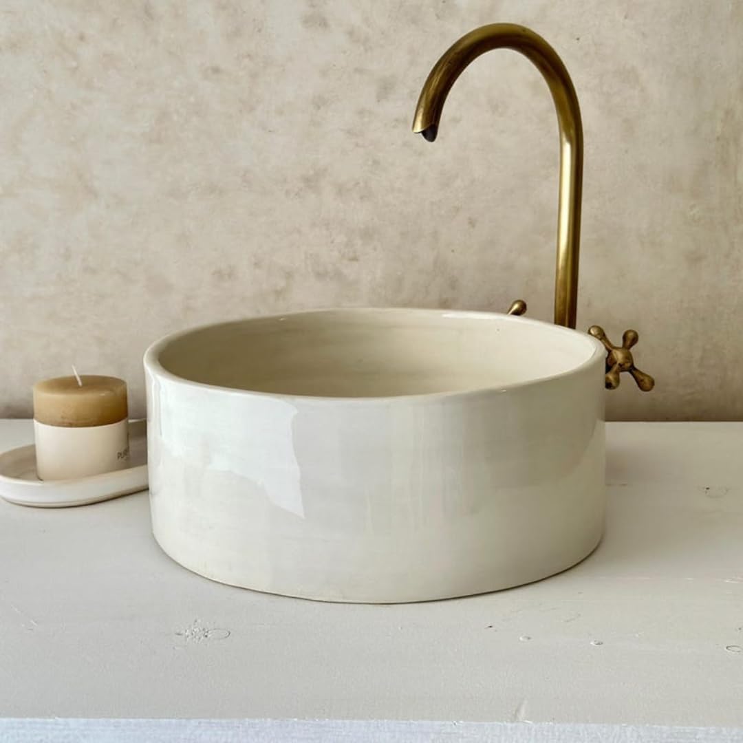 Elevate Your Space with a Piece of Moroccan Heritage Discover the perfect blend of timeless charm and clean elegance with this authentic handmade white ceramic vessel sink. Each vessel sink is a testament to the skill of Moroccan artisans, crafted using traditional, sustainable methods passed down through generations. The pristine white glaze and handcrafted texture transform this functional bathroom sink bowl into a piece of artistic expression, a stunning focal point for any washbasin. Unmatched Quality and Timeless Style Our commitment to quality is evident in every detail. Made from durable, high-quality ceramic, this above counter bathroom sink is built to withstand daily use while maintaining its beauty. The non-porous surface is easy to clean and naturally resistant to stains, making maintenance simple. The pure white color complements a wide range of decor styles, from rustic farmhouse to modern minimalist, making it a timeless addition to your home. Find Your Perfect Fit We understand every bathroom is unique. That's why our pottery sinks are available in a range of sizes, from a small vessel sink perfect for a guest bathroom or camper, to larger bowls ideal for a main vanity. Choose from our 25cm, 30cm, 35cm, and 40cm sizes to create the exact look you desire.