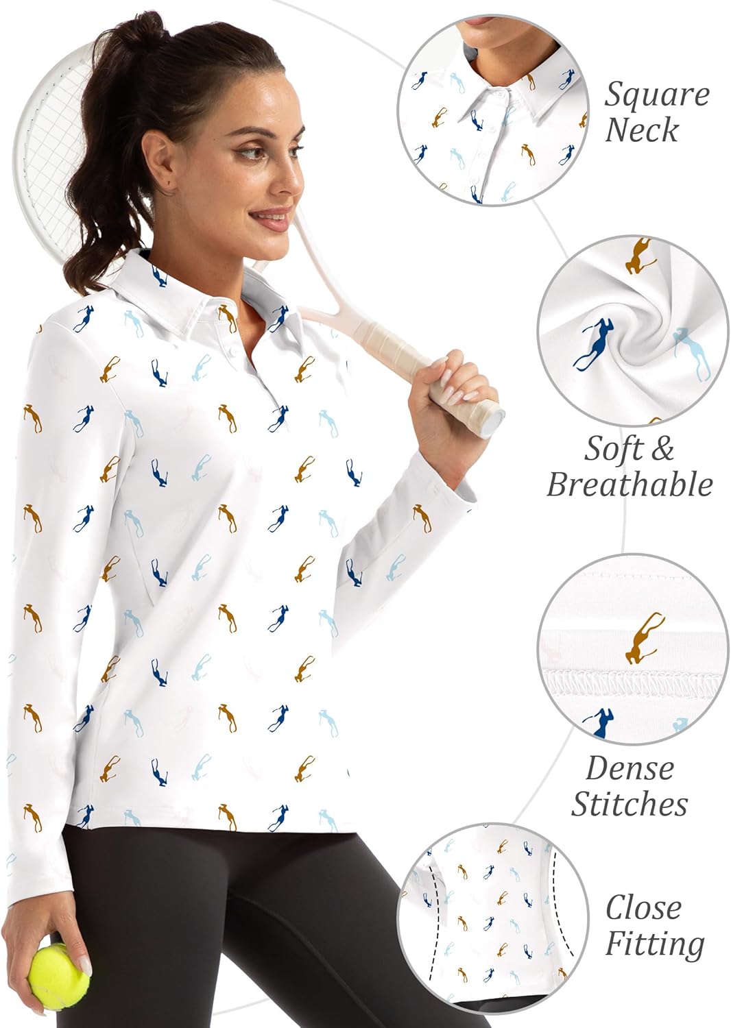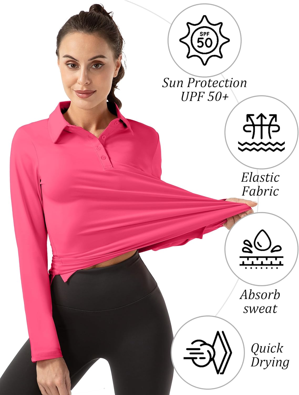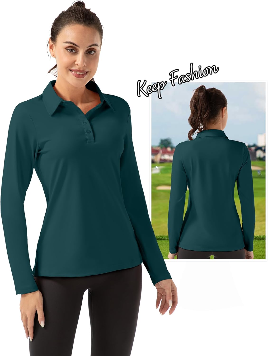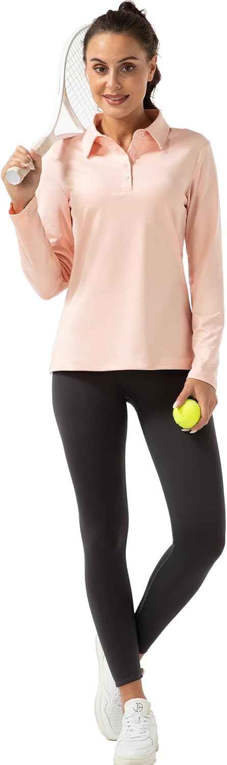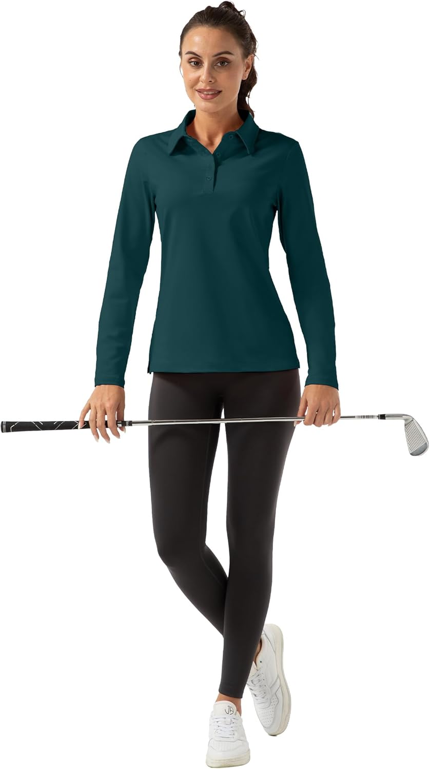 FKEEP Women Long Sleeve Polo Shirt Golf Sport Top Athletic Sportswear Tennis Activewear (Forest Green, XXL)
