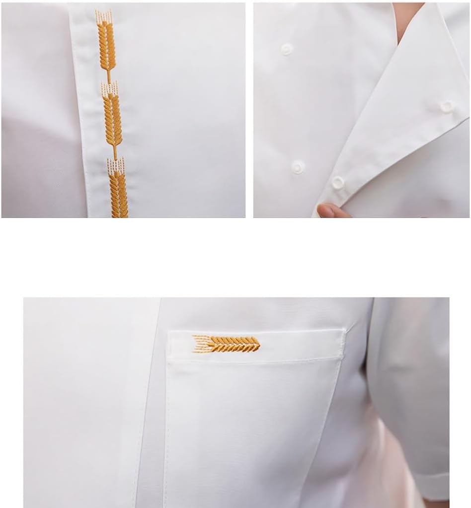 Features--Soft material offers more comfort during your work time.--Simple and classic design, suits both men and women.--High moisture absorption and sweat releasing function, suit for all seasons!--Jackets with pockets offers place for your pen or thermometer during work.--Chef jacket suitable for restaurants, hotels, bakeries, etc.Material: Cotton blend, 35% cottonSize: M-7XL, Please refer to the size chart by the image!Please measure your size before choosing a size, especially the CHEST size! It is recommended that you choose one size up if you are not sure!Package Include: 1* chef coat jacketNote1.Due to different measurement methods, please allow 2-3cm measurements error, please understand!2.Color of the clothing due to lighting reasons may be a little different from original primary colors, please understand!