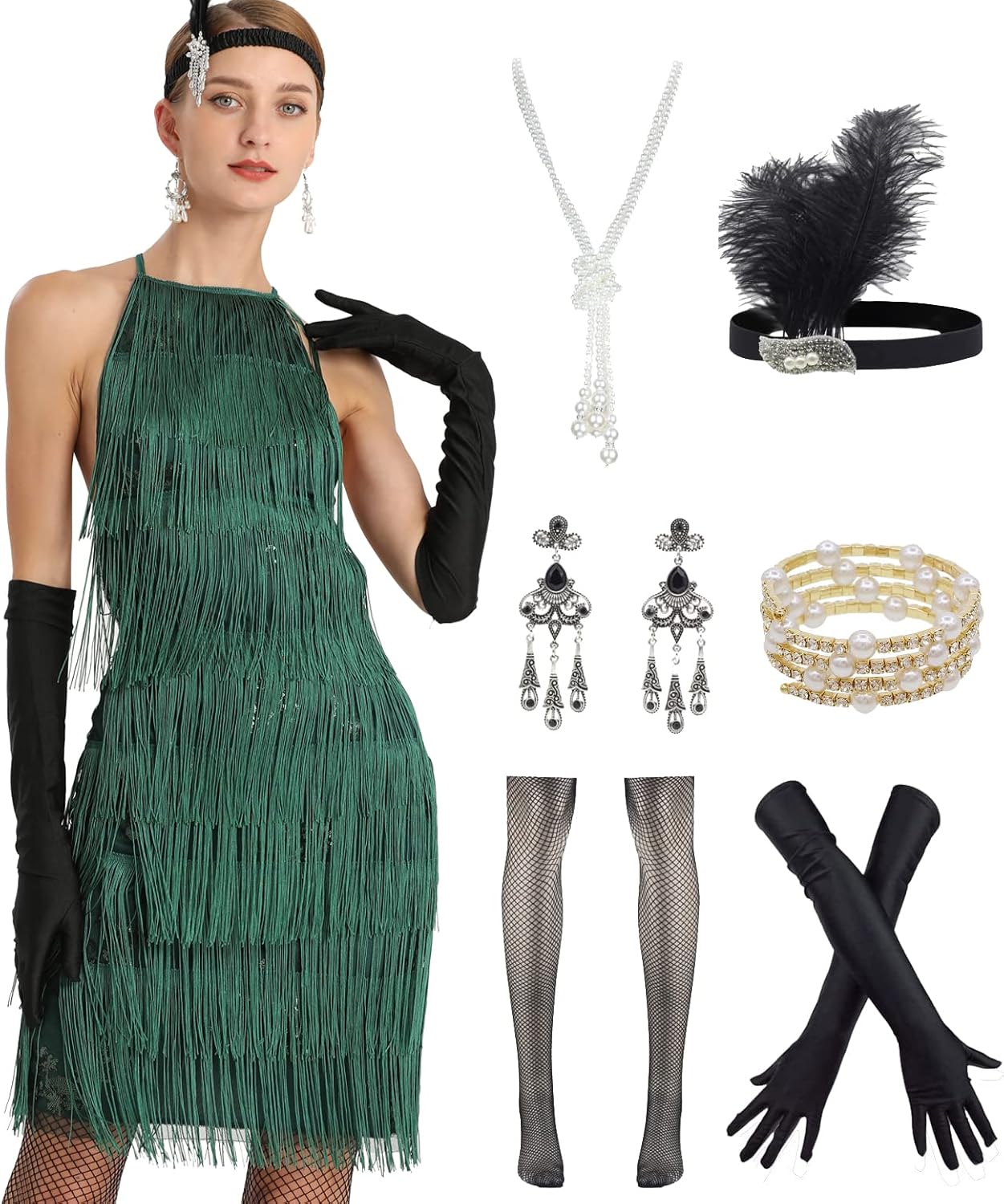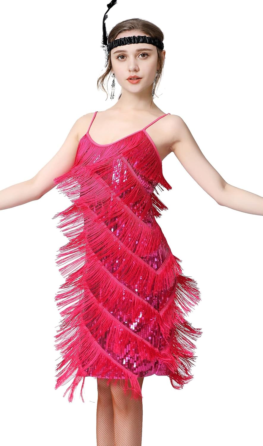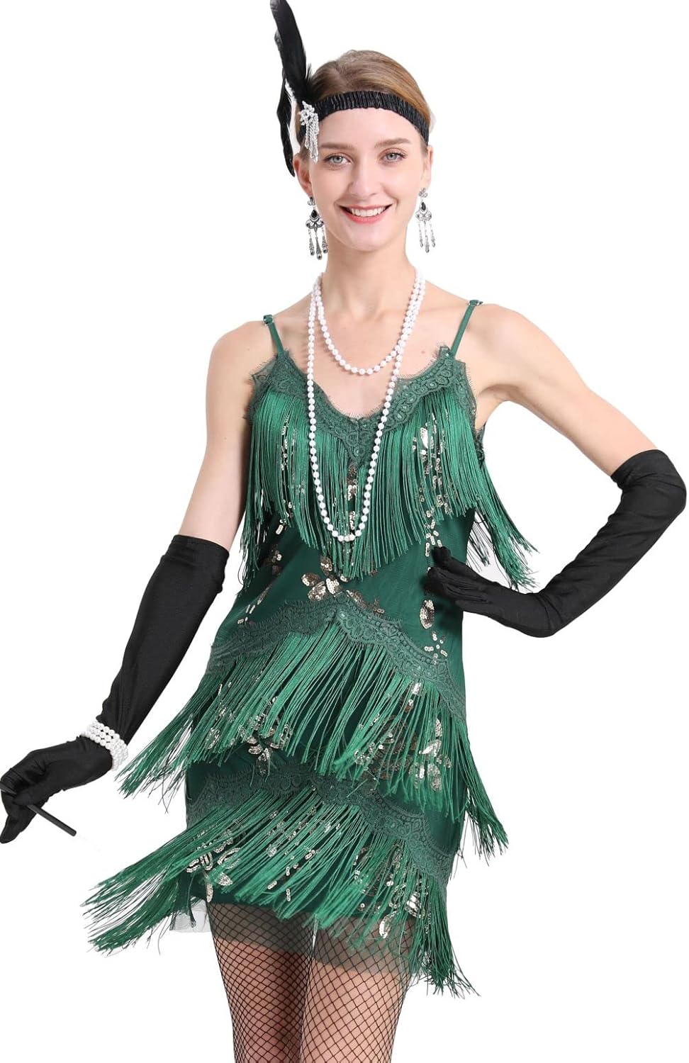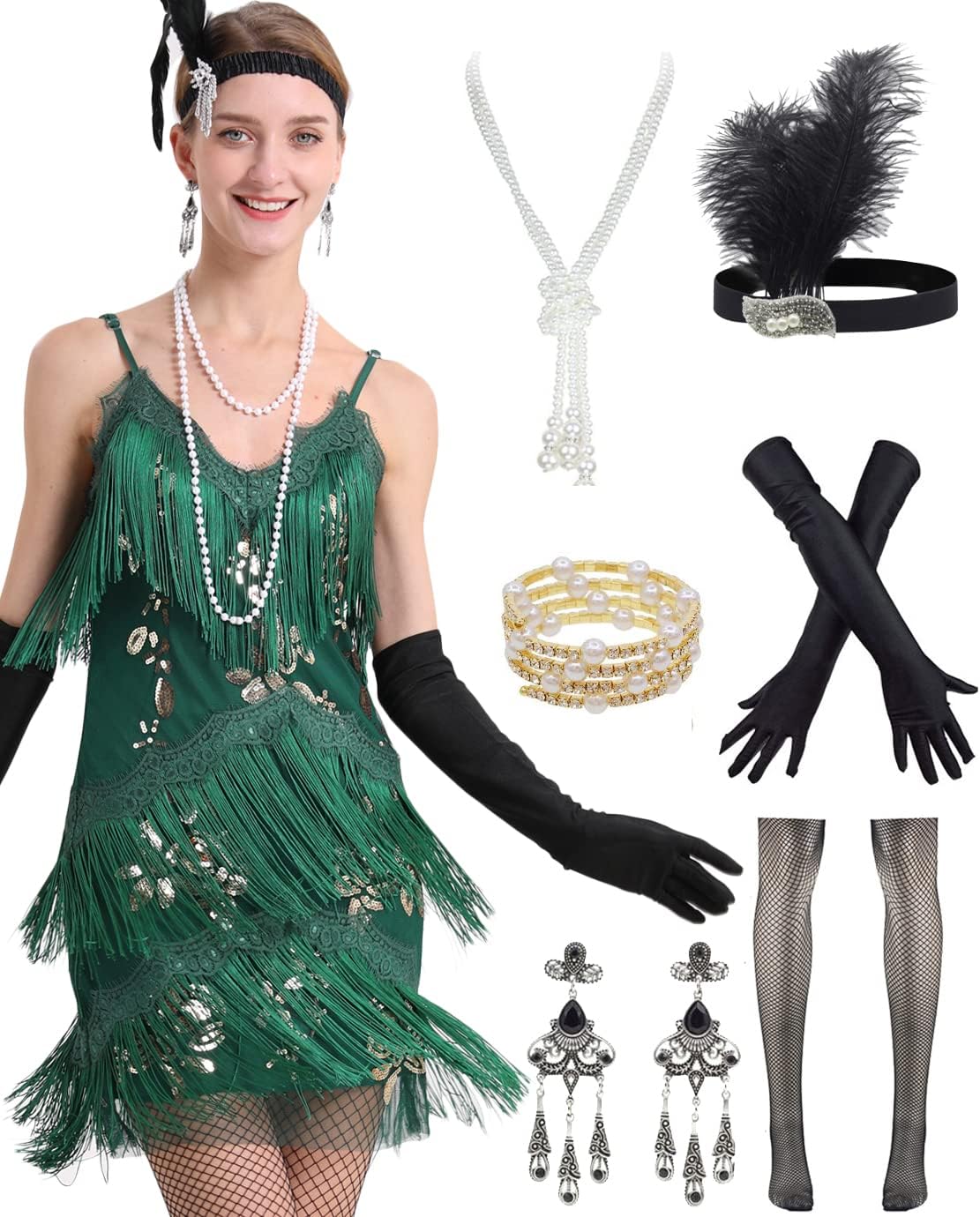๐Women 1920s clothing broke out of the prim and proper mold of Victorian ideals and into free spirited casual wear. In the roaring 20s, the clothing was glamorous and the women were elegant. Our 1920s collection includes fringe flapper dresses, flapper girl costumes,sequined flapper dress and beaded flapper dress. ๐Come with 1920s Accessories set, Its elegant chic design and 1920s great Gatsby style will make you look more charming, special and beautiful. ๐Package Include: ๐1 x 1920S Sequin Flapper Dress , ๐1 x Pearl Necklace; ๐1 x Satin Gloves; ๐1 x Crystal Bracelet; ๐1 x Headband ; ๐2 x Earrings; ๐2 x Fishnet stockings; ๐1920S Sequin Dress size chart: S-- Bust:29.9"--Waist:25.1"--Hip:31.4"--Lenght:27.9" M--Bust:31.4"--Waist:26.7"--Hip:33"--Length:28.7" L--Bust:33"--Waist:28.3"--Hip:34.6"--Length:29.5" XL--Bust:34.6"--Waist:29.9"--Hip:36.2"--Length:30.3"