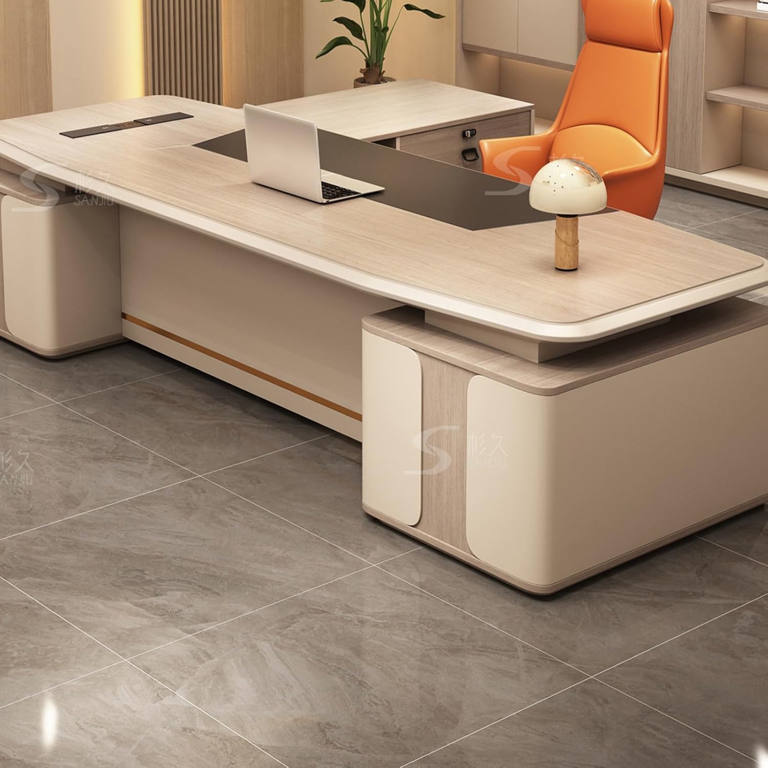 Product Dimensions: 94"L x 71" W x 29.5"HColor: BrownStyle: ModernBase Material: Wooden LegsTop Material Type: WoodFinish Type: WoodSpecial Feature: L-ShapedRoom Type: Office, Bedroom, Study RoomRecommended Uses for Product: WorkingPackage List:Executive Desk x1Installation Accessories x1