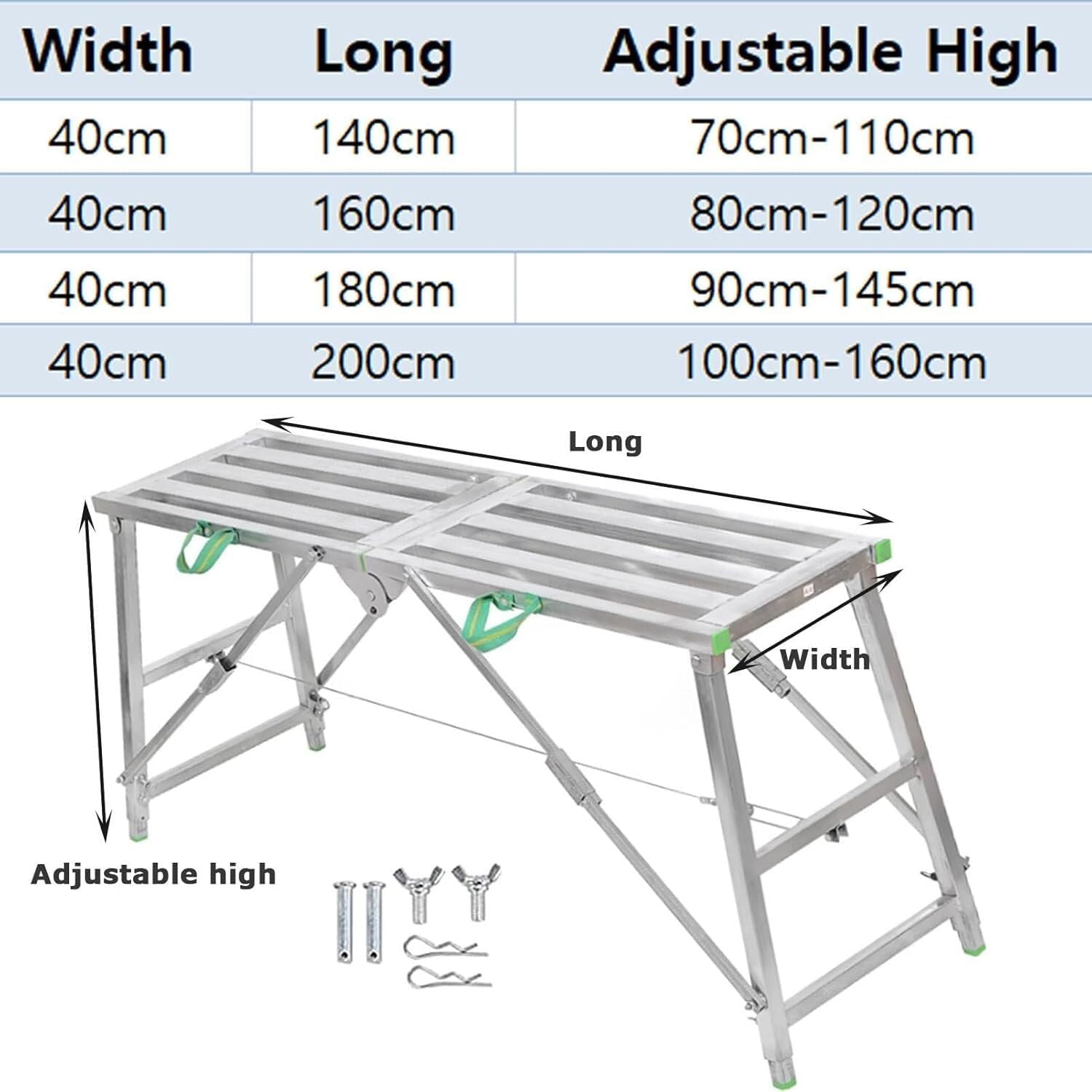 Folding scaffolding equipment, portable multi-purpose work platform scaffolding tower ladder bench workbench, galvanised steel adjustable height scaffolding equipment tools