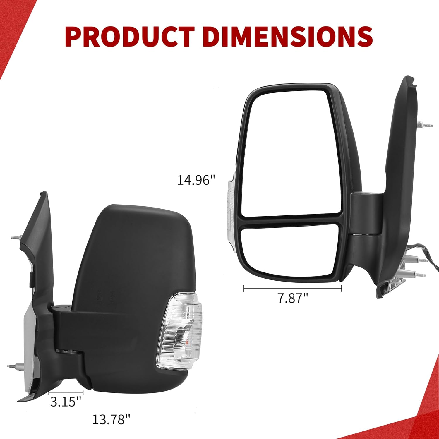 • Package contents and dimensions: including left driver side mirror, side mirror size is 14.96”×7.87”