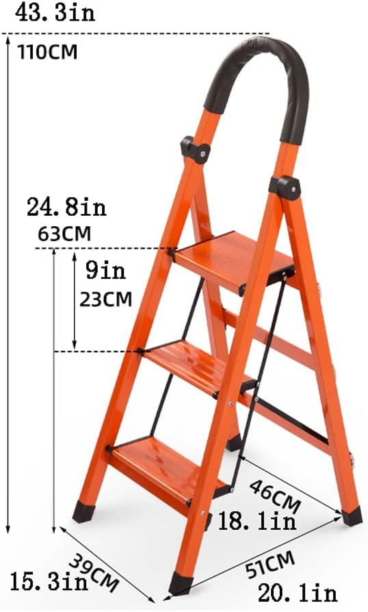 YYDS Ladders Folding Step Stool Aluminum 3 Step Herringbone Ladder with Anti-Slip Pedal for Home Space Saving Stepladder Anti-Slip (Color : Orange, Size : 110X39X51cm)