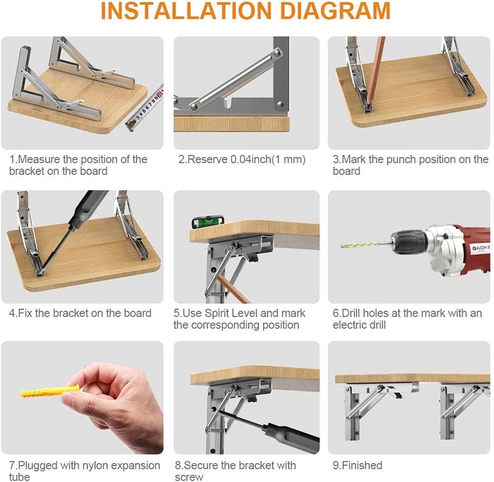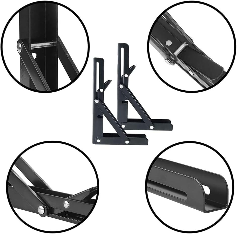If you like DIY, this will be the perfect shopping experience, they will save your budget and meet your expectations...*product data:Name: Foldable bracketColor: BlackHole: approximately 5mmMaterial: Steel + Baked Black PaintAngle Degree: 90 Degree*Package includes:2 x Triangular folding bracket ( Not including Board )+screw+expansion bolt