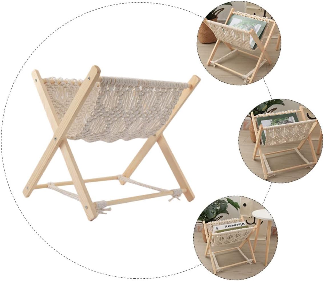 Package List 1 x woven storage rack Features - Material: Wood Cotton Rope Magazine Shelf. - Size: 39.00X33.00X34.00cm/ 15.33X12.97X13.36inch Woven Magazine Rack. - The magazine rack is made of cotton cord and wood material Magazine Organizer. - It is an incredibly versatile piece of furniture making it fantastic in a variety of different settings. Declutter and tidy your living spaces! Book Storage Rack - ColorBeige Storage Stand - Hand-woven storage rack, with bohemian country style, full of retro atmosphere Sundries Rack. - This rack is not only suitable for magazines and newspapers. It is also great for storing letters, towels, , small items, board games,, books and more Book Shelf. - The perfect furnishing to well anywhere. Suitable for apartment, hotel, bedroom, office and more Book Stand.Goods DescriptionBook Stand Such a sturdy and solid structure ensures that these shelves are functional, and stable.Book Rack Made of wood material, this magazine rack is suitable for rustic, modern, house decoration.Magazine Holder Adopt high-end quality, can keep it for a long time
