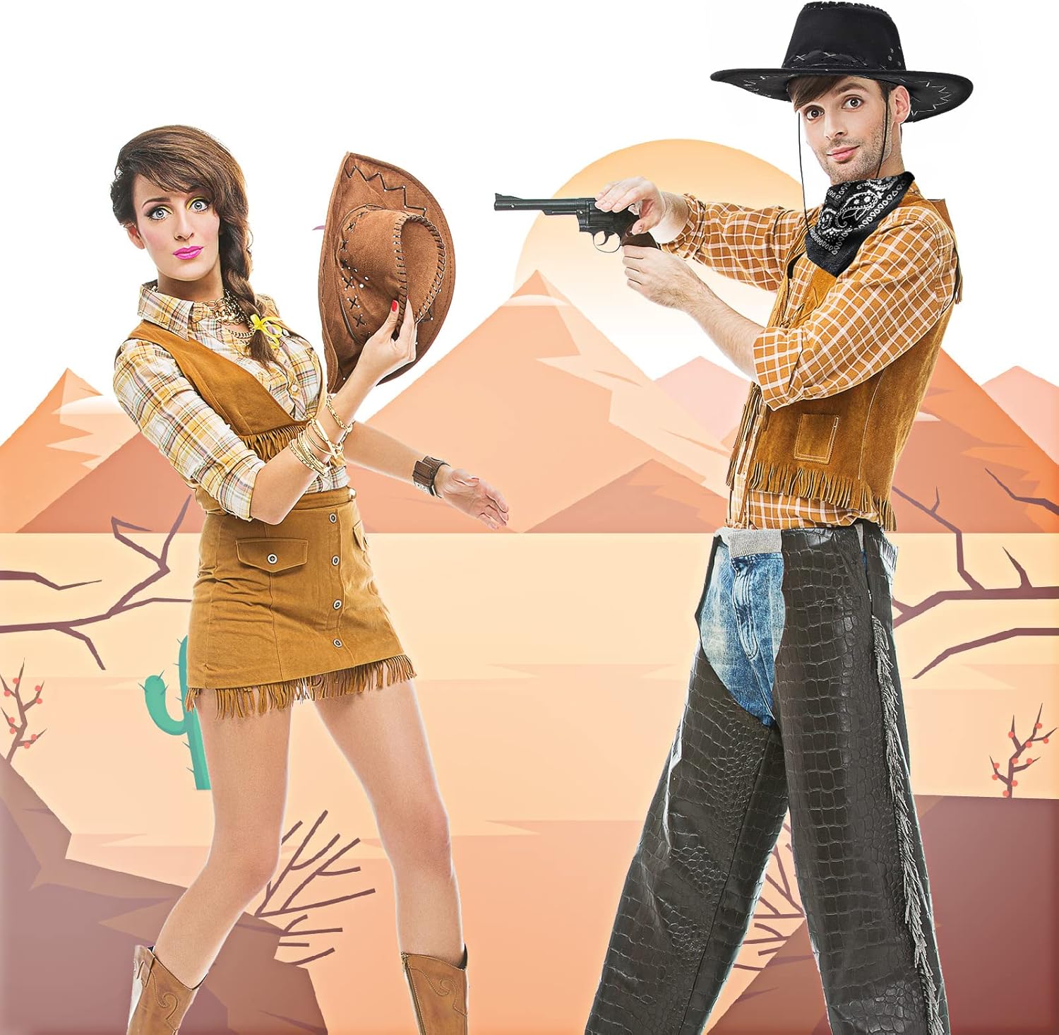 Zhanmai 12 Pieces Halloween Costumes Cowboy Hats and Bandanas Bulk Western Cowboy Cowgirl Hats Costume Party Favors